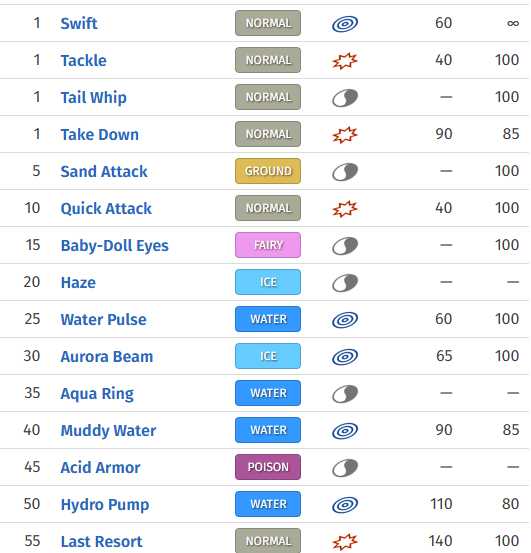 As a counter-example, Vaporeon is better getting actual STAB moves and Haze is interesting, I do not have that many problems with this one especially since it still has the Ice Beam TM, it feels like a fairly solid bulky Water in the context of a singleplayer playthrough.