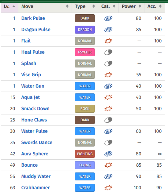 In Scarlet/Violet you can get this encounter near the early parts of the game. Now, ignoring the fact that this literally has *almost* a set for you, if you were to do a normal training of this mon... You level it up to 25 in a game with Exp. Share and it gets fucking Nasty Plot. 5 more levels and you get Incinerate. 7 more and you get Venoshock. Both mid sure I guess, but then they make up for it by giving you Dragon Pulse through Level Up soon after, and Flamethrower at 51 which finishes out your 4 moveslots for you.