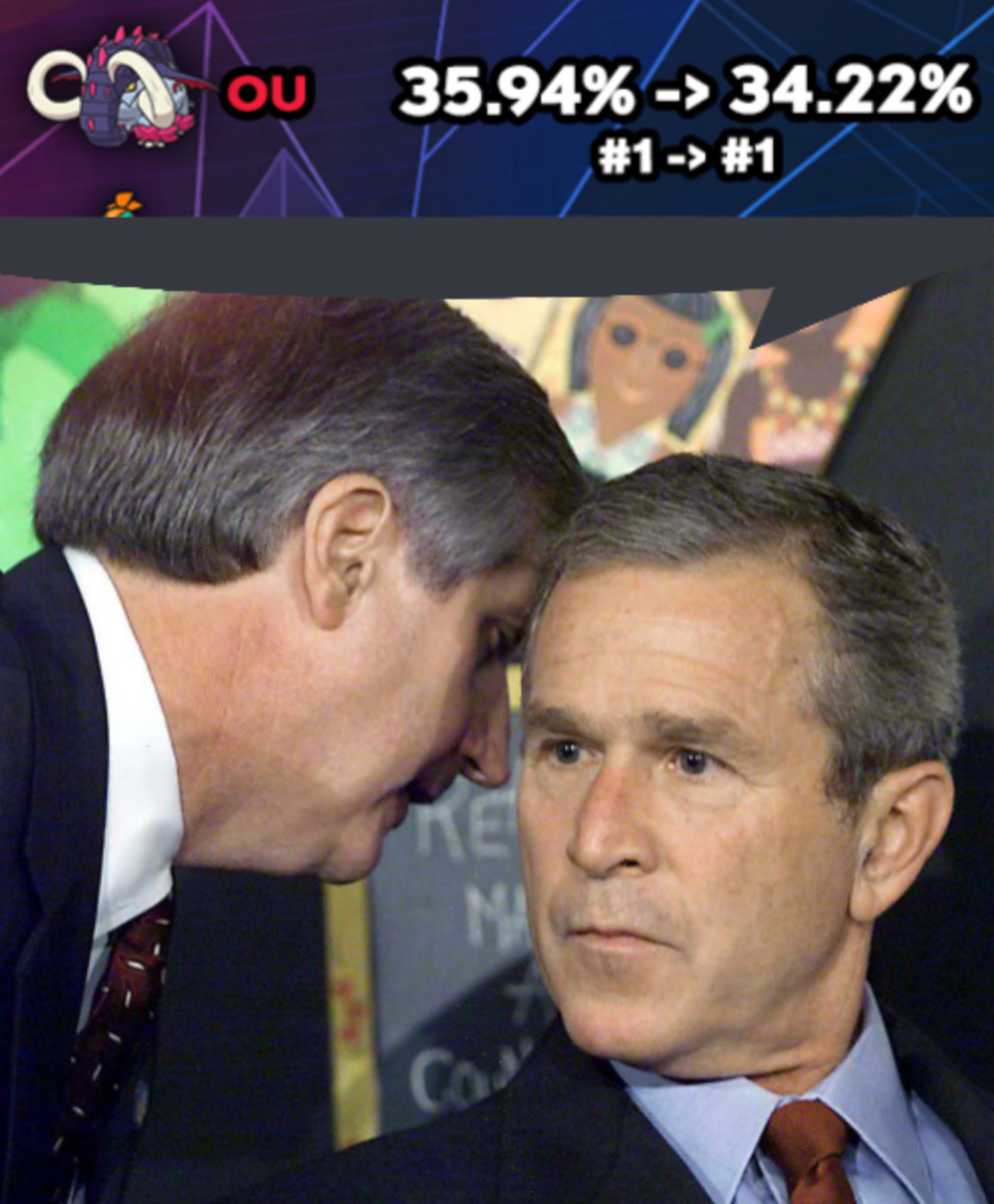 If shift happened this month, the British bacteria and metal mantis would've risen to OU. Glad to see Scizor doin' fine even after losing Roost. (I have no comment on Gweezing, we all just gotta find a better physical wall).