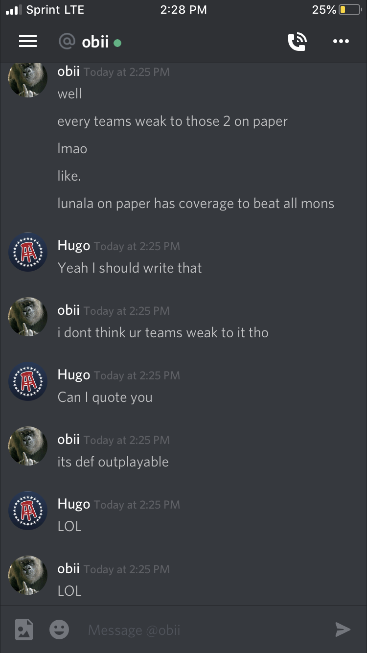 I get the issues with the higher skill ceiling of the team, frankly is tough for a newcomer to play it but still just released it. Regardless, pex is a problem yes, for that I tweaked the xern set a bit actually, made it thunder defog. As for the specs or LO ygod mu, it’s not even a remote threat as every mon out there atkeast toxes the ygod or can effectively trade. Waterceus can take two oblivion wings and return with toxic, sacking MMY to ygod with ice beam if the ygod is at full is a good trade from our scenario. On paper, what even stops specs ygod apart from mag in general? It’s about the level of outplaying and also lunala is prolly the easiest threat to eliminate. The pdon can also tox or SR depending on the scenario while an aggressive switch on oblivion wing to the DM will ensure a very good position for us as we can set rocks up and then have the option of ultraing and hitting the next switch in. As for the webs mu, what in the world is smeargle setting webs again is the first argument. Second argument it is fairly easy for us to SR due to two SR users with supposed and offensive utility both combined. The Waterceus plus defensive pdon plus sneak marsh should be able to handle the likes of ultra necro with rather ease. There are two types of necro on webs, either it’s SR Special necro which isn’t even remotely a problem for the team looking that we have a DM or our own which can force early ultra mind games along with a xern and MMY for special absorb. The other necro is offensive SD set which can be tough to maneuver against granted but the whole premise of the team is no one is letting the webs up if being used by a good player. A good team cannot cover all mus unfortunately USM is too vast for that. The pdon on other circumstances can come across as a great pain to the opposing team. BU z move Marshadow isn’t even remotely a threat where you have a fat as hell waterceus which isn’t nearly 2hkoed by LO CC. Lunala is prolly the easiest thing to beat because of the pursuit trap and four mons that outspeed it. Somehow your only legitimate threat to this team is pex which I am countering with thunder defog and am gonna release the updated squad. Regardless of the fact tho, the current so called “easy to use” teams are going to give them no room to learn or improve as they are going to be potentially losing 90 percent of their games. The teams are low in quality with holes that are very prominent. My team might be a bit on the advanced side of things granted but atleast the team is a legitimate one and can actually put in work.
