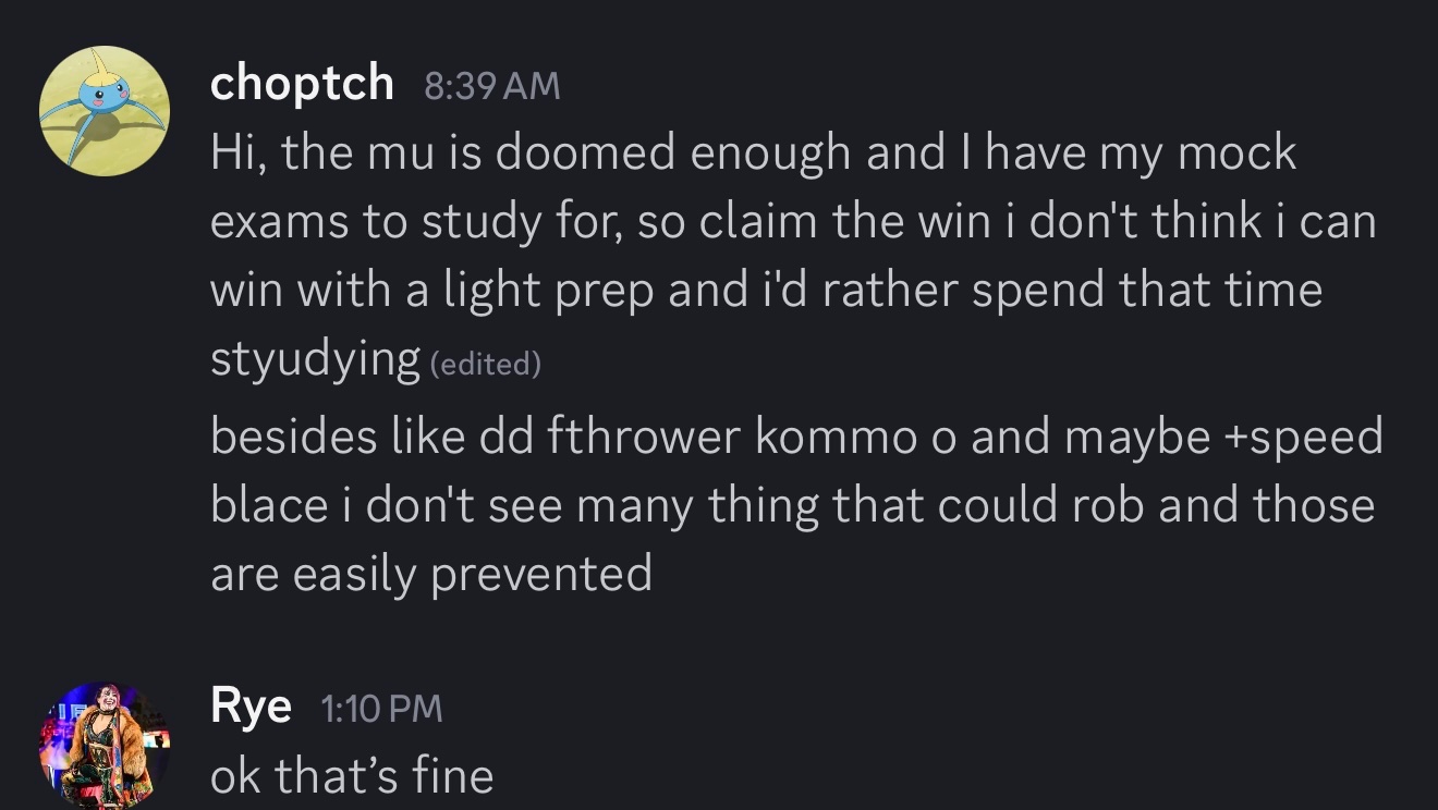 Mister McLovin It was between that or mohammad Sunday at 6:48 PM #33 won ggs https://replay.pokemonshowdown.com/gen7draft-2482600954-4gbiluy4gf3c6isntrj37ltioiym80upw