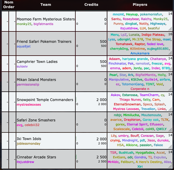 freezai for piloting my teams to solid success in the tour, when you won I felt I won. Go Ladies! Enough rambling though, I've got a compilation of teams I built for Freezai, raptor, Chaos, and myself to share. Sprites will be in the pastes for most since they're public or outdated.