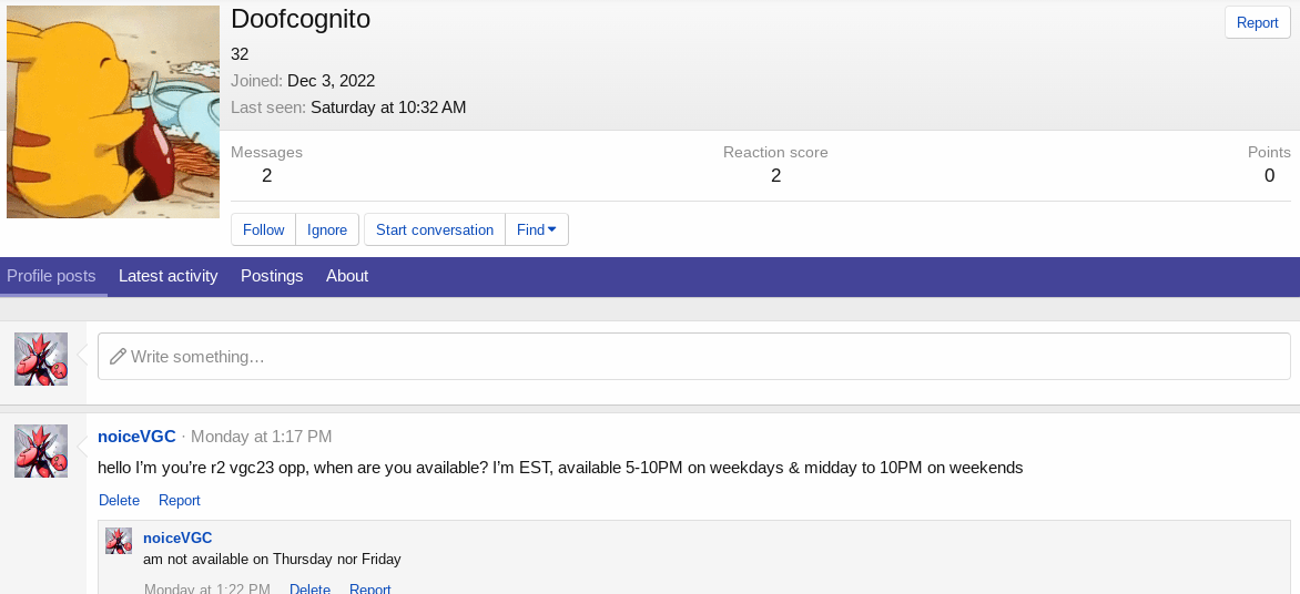 Hi, I gave your opponent the win because no extension was requested and the round was over and they did a better job at keeping up with schedulingHi, my round 1 opponent and I didn't end up linking up but I'd still like to battle. I'm happy to still do my round 1 battle too. I also don't see myself in the round 2 pairings. Can someone help?