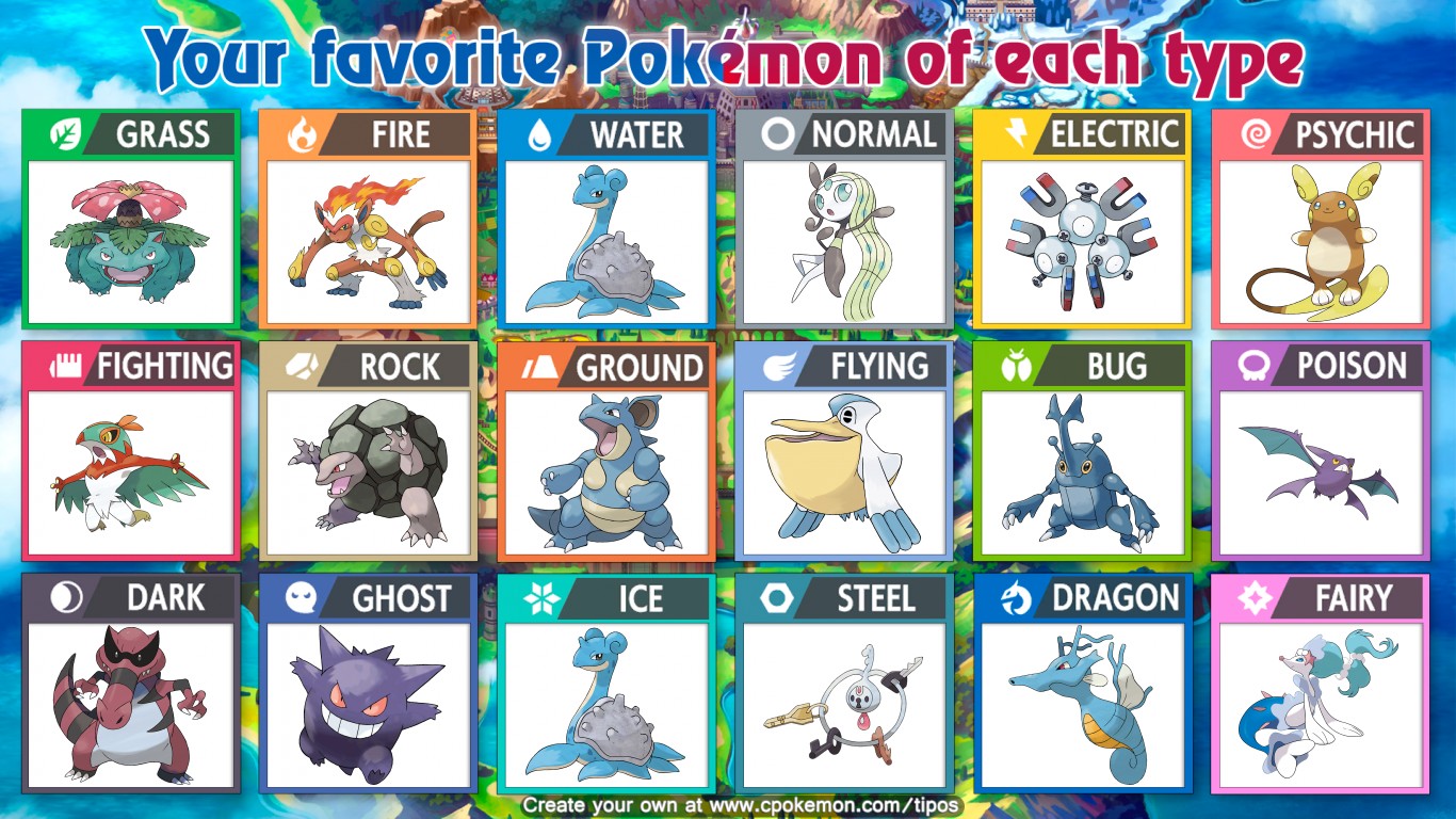 I like every pokemon here besides like 4 or 5 because of competitive, lame af.