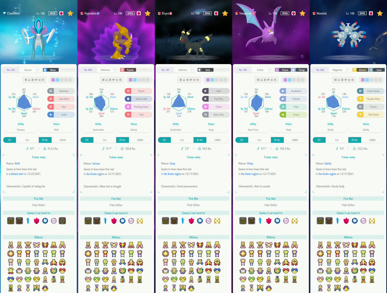 At the time the run started, I had no games more recent than gen 3, but as I wrote there, I did find a loose 3DS in a fateful encounter about a month in. This allowed me to experiment with 6 (and, shortly after the run was over, 7), then I would eventually fill in the gaps by ordering B2, Platinum, Colosseum, and ultimately a Switch. And of course, it's not possible to migrate anything from cartridge Gold onto those later games. But the characters endure further than any data tokens that may represent them, fungible or otherwise. So they stuck around, in some form or another, for ordinary playthroughs in several of those later games (usually with a couple spare team slots to fill on a whim), and I got more familiar with what all they could, or wanted to, do as the choreographer of their mystifying dance. Finding a way to rise through the Sinnoh league without anyone ever cracking level 40? Sure, why not. They're practically in their element that way.