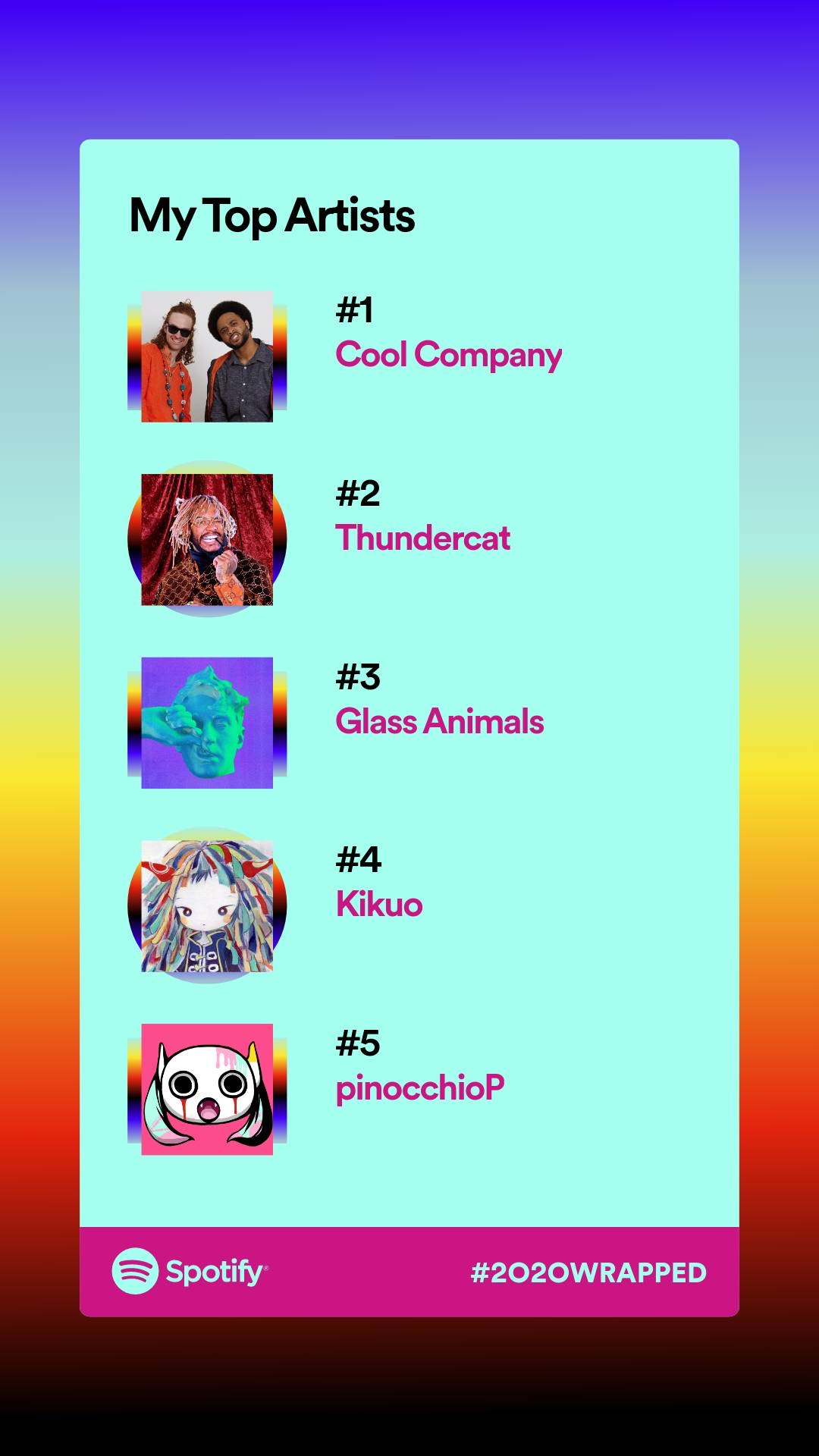 I WILL SAY though that my top 5 isn’t very representative bc the way I listen to music means I play one song or album on a loop for anything from 1 day to 2–3 weeks before listening to smth else, meaning there’s quite a bit of skew. The only thing that’s consistently high-plays on there is Kikuo, tho I expect Necry Talkie will have likely joined him by next yr.